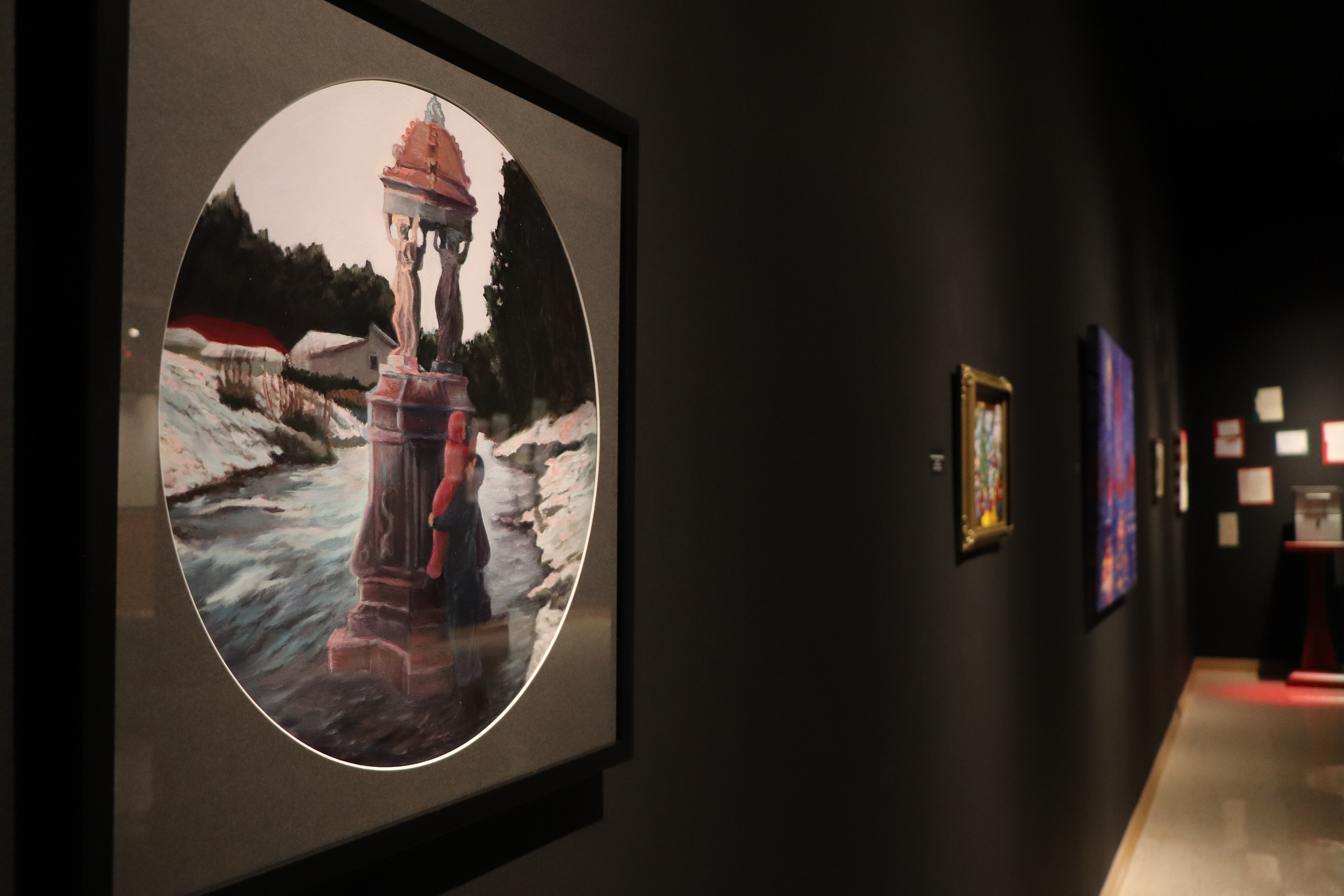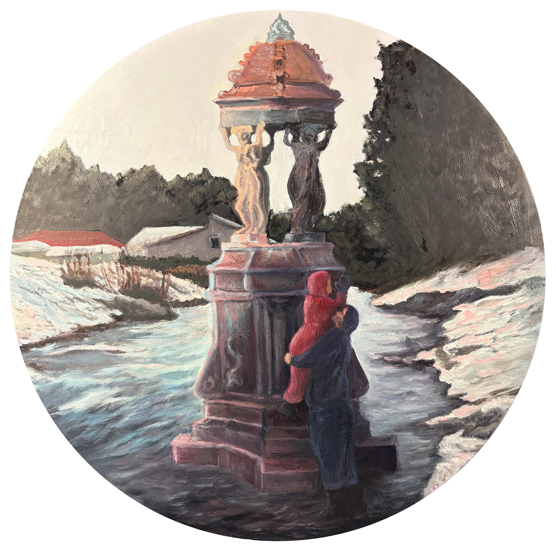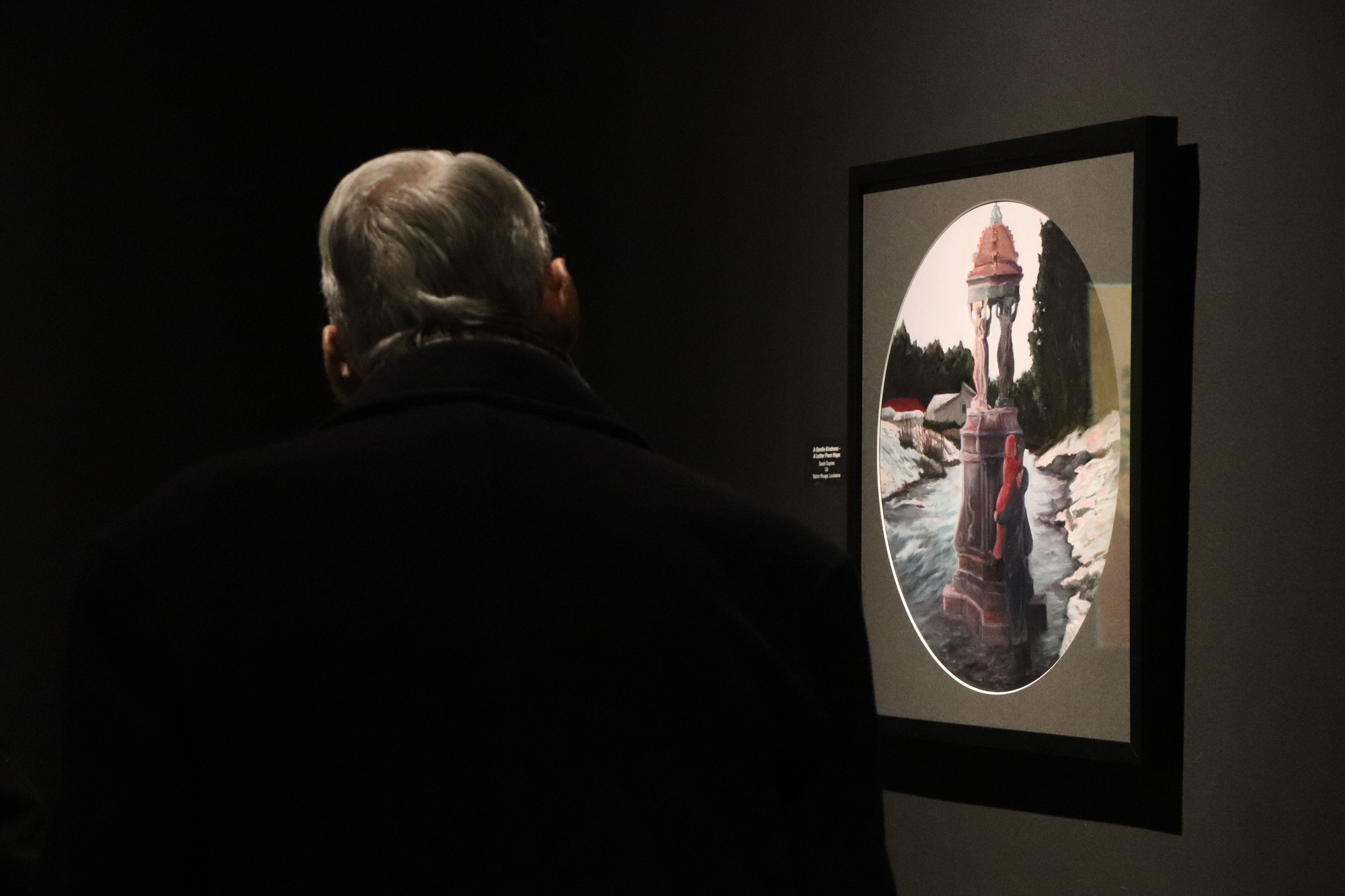 The painting draws inspiration from two sources - the iconic lamppost in The Chronicles of Narnia and the museum's own The Christmas Letter, which shares the same pose. Visually, it becomes a collage of my favorite Christmas memories: wandering the Quarter with my sisters, traveling to the mountains to see snow for the first time, and visiting the Norton each year to take in the holiday decorations.