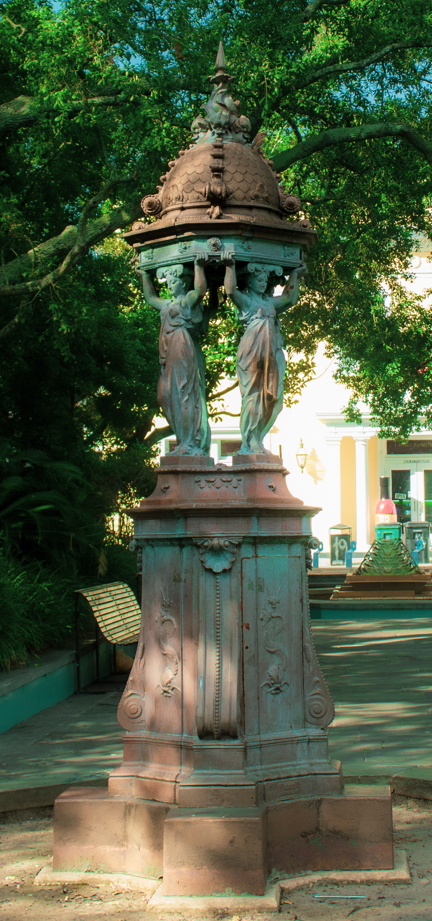 The fountain in the painting is of this statue in New Orleans located in Latrobe Park. I just recently captured this photo, but it reminded me of the time one of my sisters eloped to New Orleans and got married in Jackson Square. It was just around Christmas too, so the lights were were at their most beautiful. We sorta went with her, and just had a small dinner and second line, but it was one of my first experiences in the Crescent City.