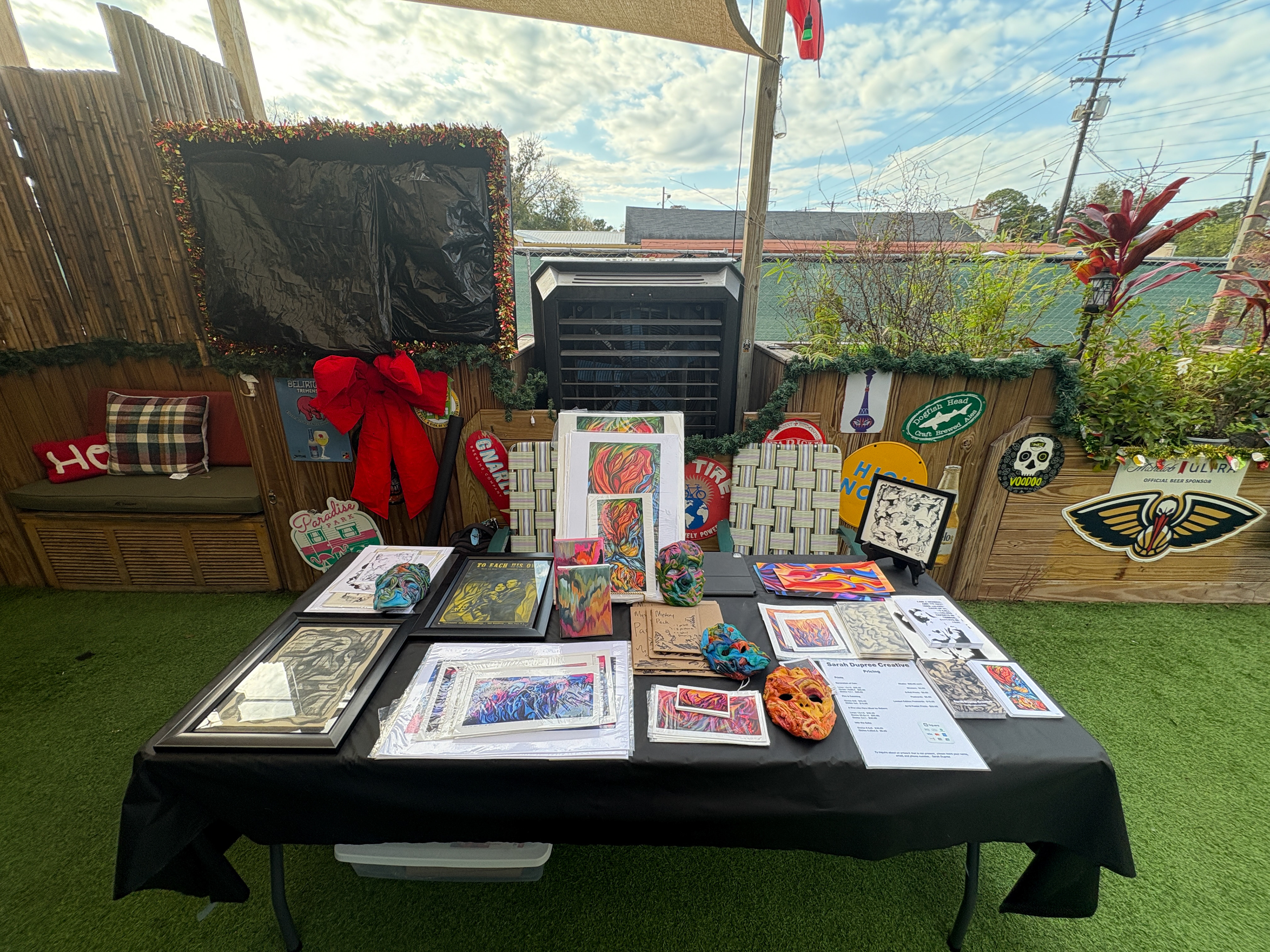 Vendor Information: I have a 10x10 tent setup and a 6x6 table arrangement. I sell Fine Art Prints, Surrealist Objects, and Multimedia Services.